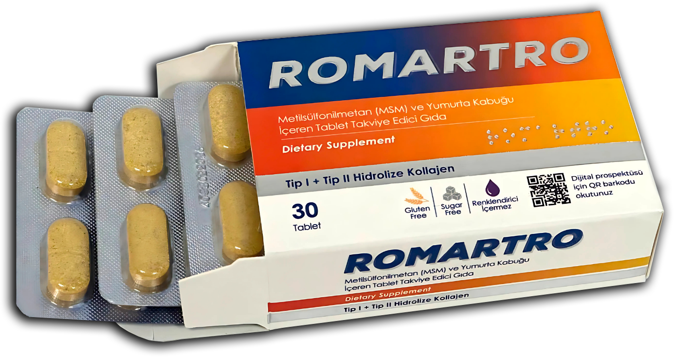Tip 1 + Tip 2 Hidrolize Kollajen ve yumurta kabuğu içeren tablet takviyeleri genellikle eklem sağlığını desteklemek için kullanılır. MSM, eklem iltihabını azaltabilir, kas ağrısını hafifletebilir ve bağ dokusu ile kıkırdak sağlığını koruyabilir. Yumurta kabuğu ise kalsiyum, kolajen ve diğer mineraller içerir ve kemik sağlığını desteklerken eklem sağlığını iyileştirebilir. Bununla birlikte, herhangi bir takviye kullanmadan önce doktorunuza danışmanız önemlidir.